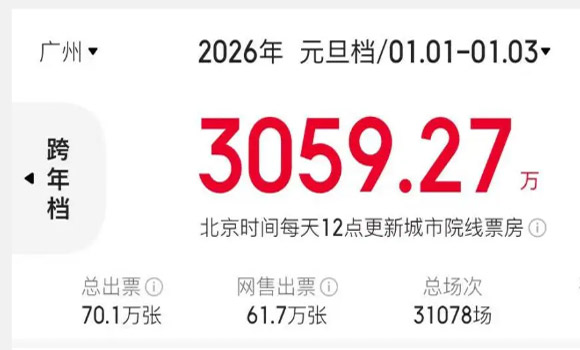 新年伊始,广州电影产业迎来市场与内容双线突破。2026年元旦档,广州以3059万元的票房成绩位列全国城市第三位,穗产电影《匿杀》登顶元旦档国产影片票房榜首。